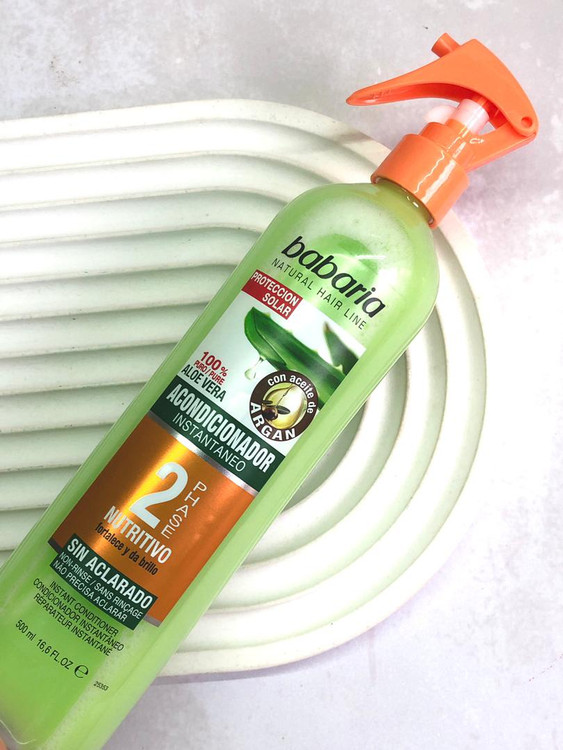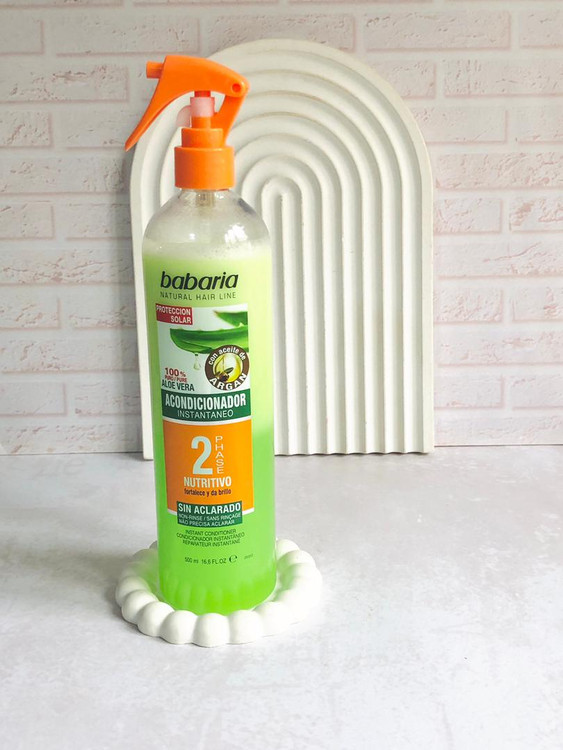 اسپری دوفاز مو باباریا، ساخت کشور اسپانیا، حاوی عصاره طبیعی آلوورا و روغن آرگان است که مواد لازم جهت تغذیه عمیق مو و آبرسانی مو را فراهم می کند و بدین ترتیب ساقه موهای آسیب دیده و خشک را احیا و تقویت می کند.