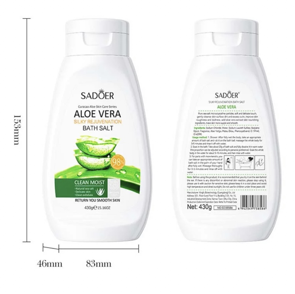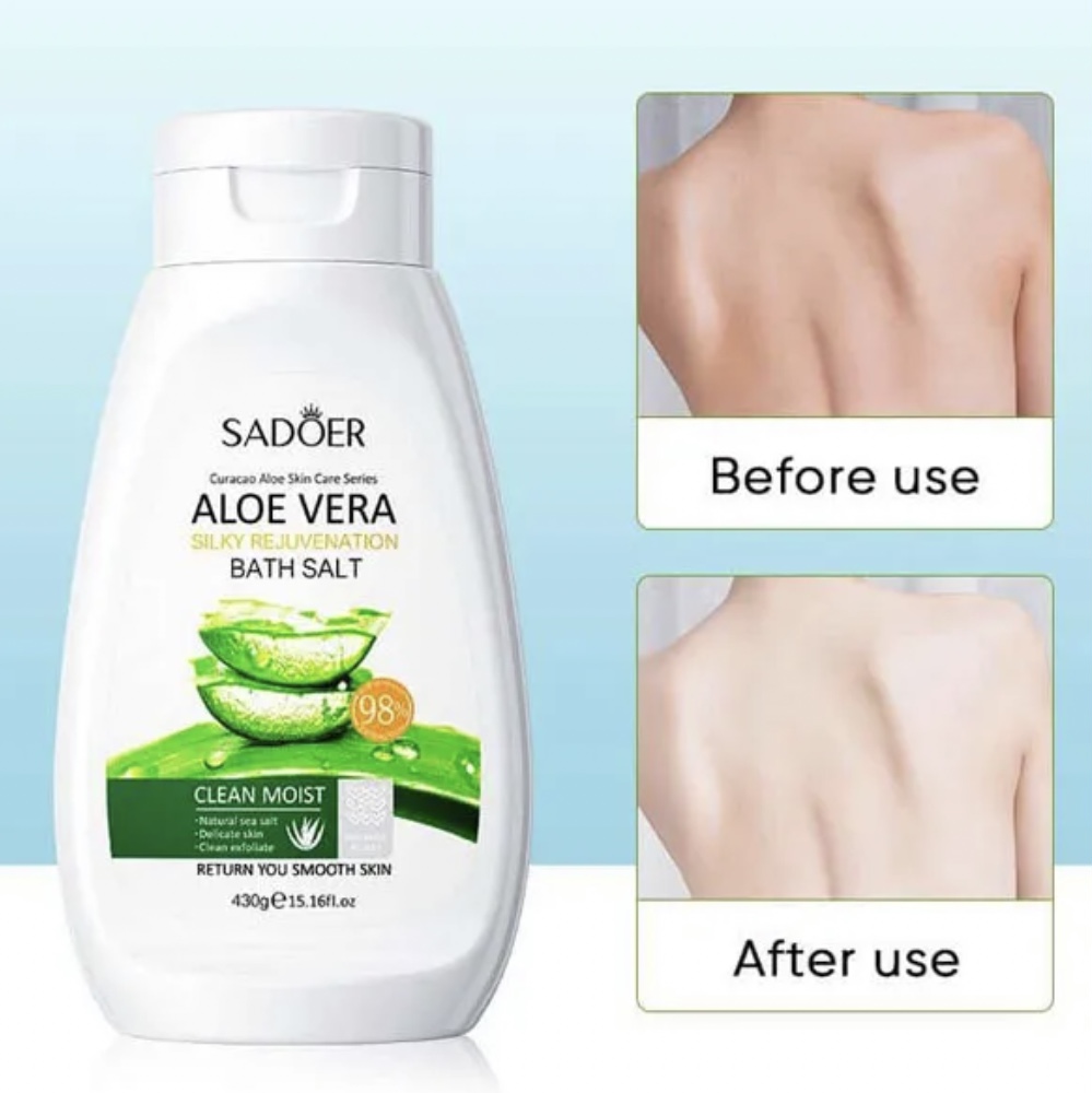 نمک بدن آلوئه ورا سادور حاوی عصاره آلوئه ورا می باشد و این نمک بدن رفع کننده تیرگی زیر بغل و کشاله ران و نقاط حساس بدن است. نمک حمام آبرسان و آرامش بخش پوست و از بین برنده سلولهای مرده پوست است و موجب سم زدایی پوست بدن و رفع التهابات پوست شده و از پیری زودرس جلوگیری می کند. علاوه بر این نرم کننده پوست و رفع کننده تیرگی زیر بغل و کشاله ران است و سبب از بین رفتن جای جوش بعد از شیو و تیرگی و کدری پوست می شود.